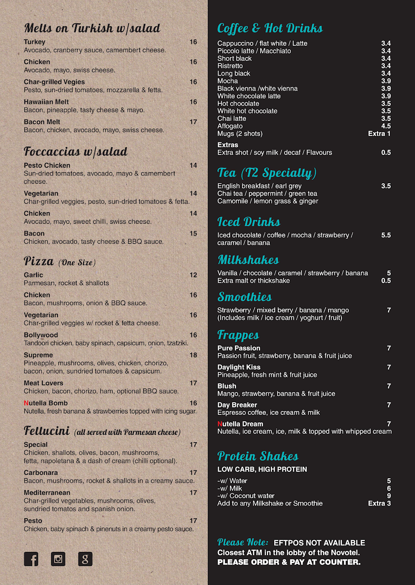 Q Coffe Bar, kaviareň, bar Liptovský Mikuláš Menu